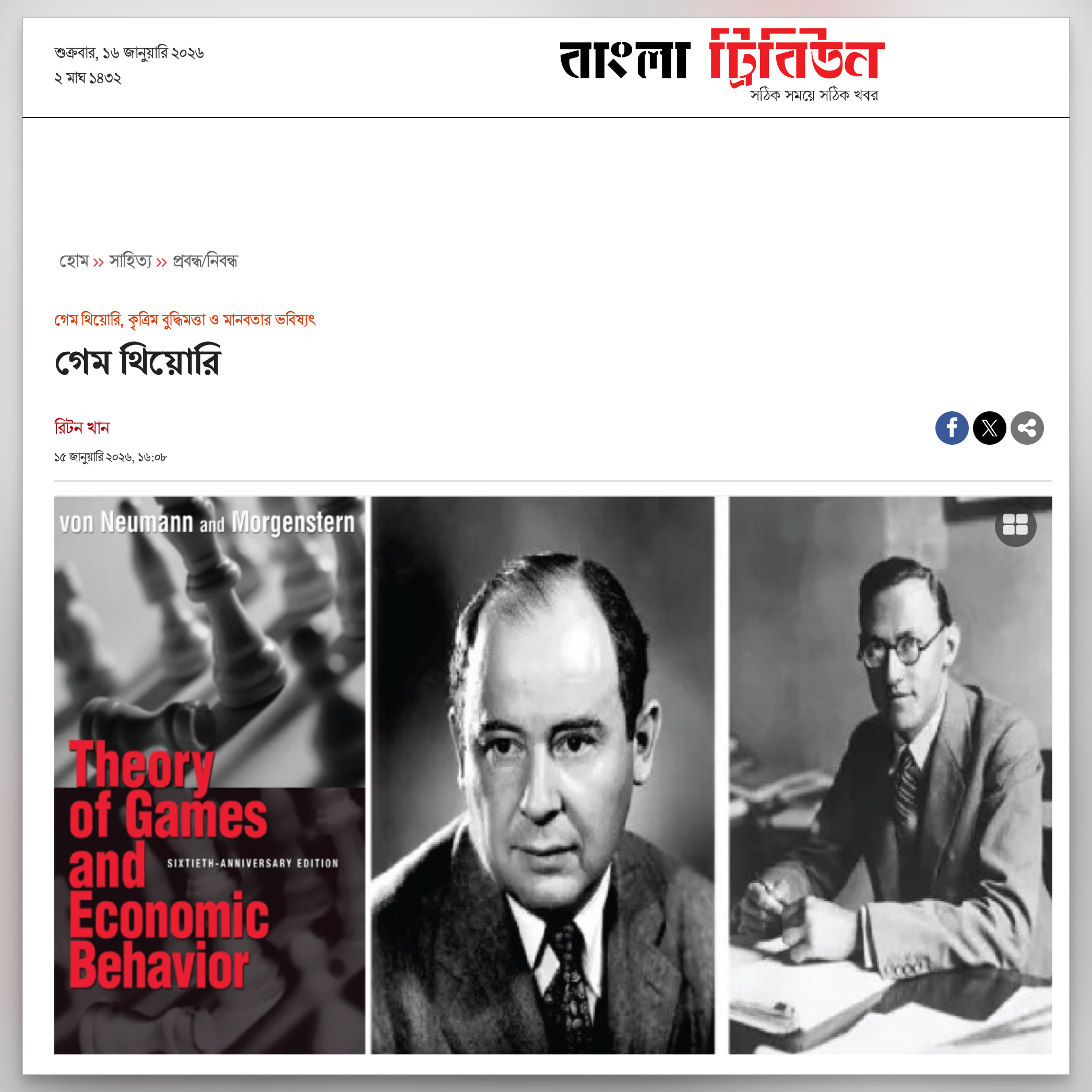 আধুনিক বিশ্বব্যবস্থায় সিদ্ধান্ত গ্রহণ, কৌশল নির্ধারণ এবং পারস্পরিক আচরণের যে তাত্ত্বিক কাঠামোটি সবচেয়ে গভীর ছাপ ফেলেছে, তার নাম গেম থিওরি। এই তত্ত্ব কেবল অর্থনীতি বা সামরিক কৌশলের মধ্যে সীমাবদ্ধ নেই; এটি ধীরে ধীরে আমাদের রাজনীতি, প্রযুক্তি ডিজাইন, সামাজিক প্রতিষ্ঠান এবং এমনকি দৈনন্দিন মানবিক সম্পর্কের ভেতরেও প্রবেশ করেছে। আমি আলোচনা করবো কীভাবে যুক্তিবাদী সিদ্ধান্তের নামে তৈরি এই মডেলগুলো মানুষকে সহযোগিতার বদলে প্রতিযোগিতার দিকে ঠেলে দেয়, বিশ্বাসকে রূপান্তরিত করে সন্দেহে, আর প্রযুক্তিকে পরিণত করে জিরো সাম খেলায়। আমরা ধীরে ধীরে এমন এক ব্যবস্থার বন্দী হয়ে পড়ছি, যেখানে সবাই নিজেকে বাঁচাতে গিয়ে সকলকে অনিচ্ছাকৃতভাবে ক্ষতিগ্রস্ত করে, এবং এই প্রক্রিয়াটিই আধুনিক যুক্তিবোধের সবচেয়ে বিপজ্জনক উত্তরাধিকার।