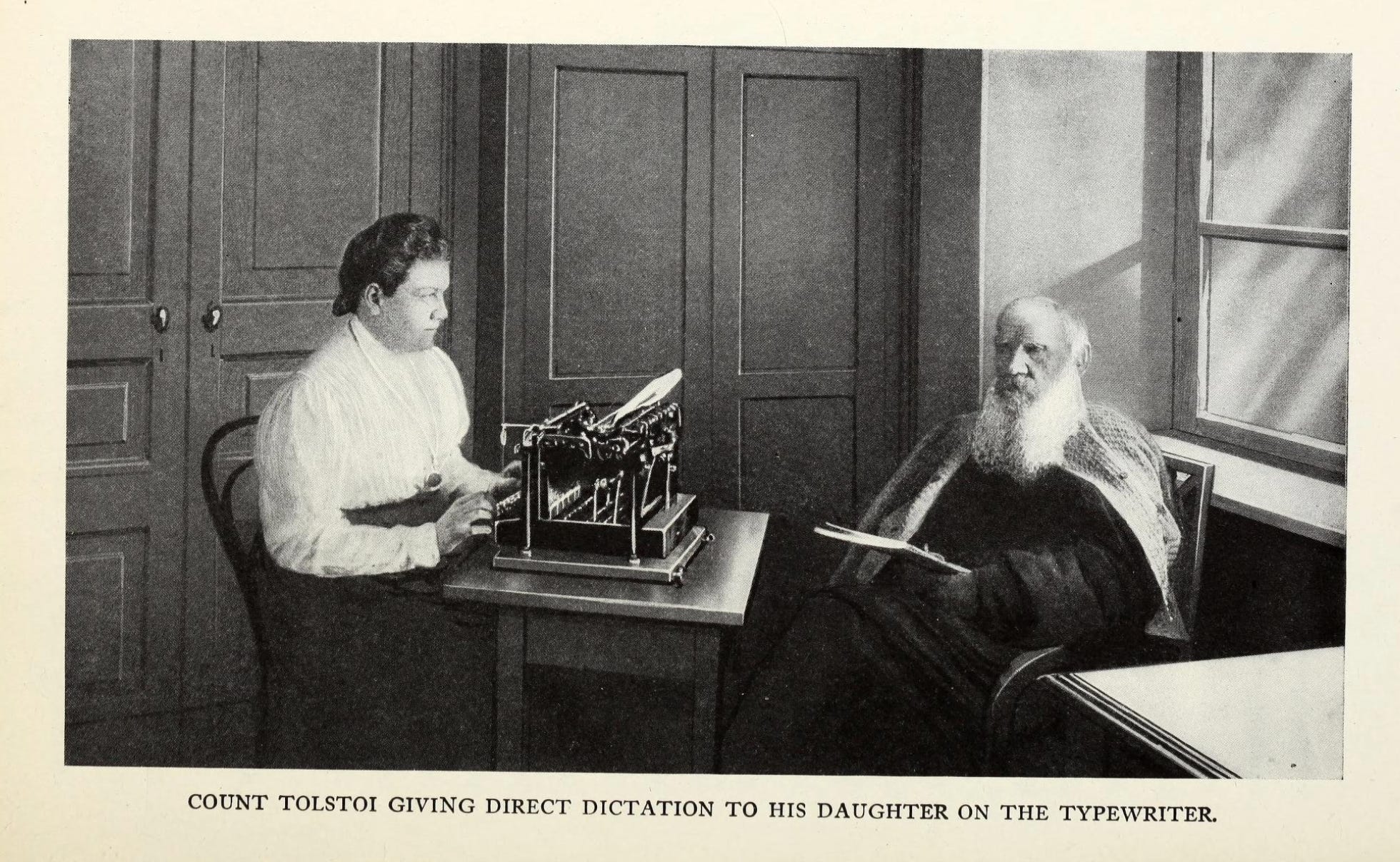 টাইপরাইটারের যুগ খুব ছোট। হাতে লেখা আর কম্পিউটারের মাঝখানে এক শতক। কিন্তু এই শতকেই সাহিত্যের ভিত নড়েছে। টলস্টয়ের স্ত্রী সোফিয়া হাতে লিখেছেন ওয়ার অ্যান্ড পিস সাত বার। মেয়ে আলেকজান্দ্রা টাইপরাইটারে ডিক্টেশন নিচ্ছেন। বিজ্ঞাপনে মেয়ের ছবি, স্ত্রীর কাজ অদৃশ্য।
